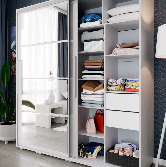 Шкаф-купе КРАФТ-6 // ясень белый, ясень белый, белая