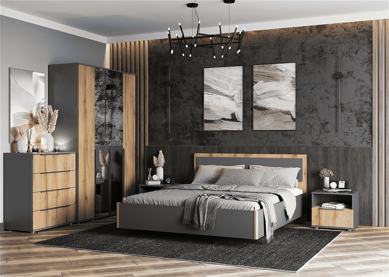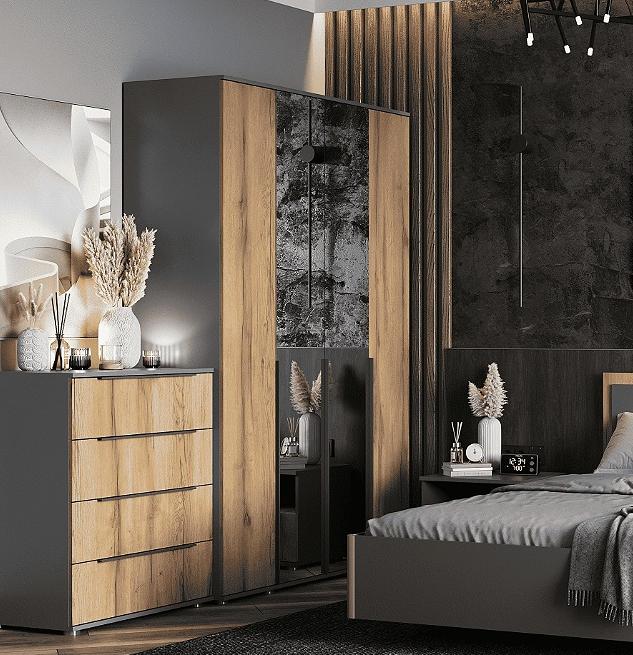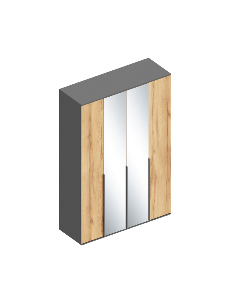 Шкаф четырехстворчатый с зеркалом СТИЛ 1400 // темно-серый лофт, дуб золотистый